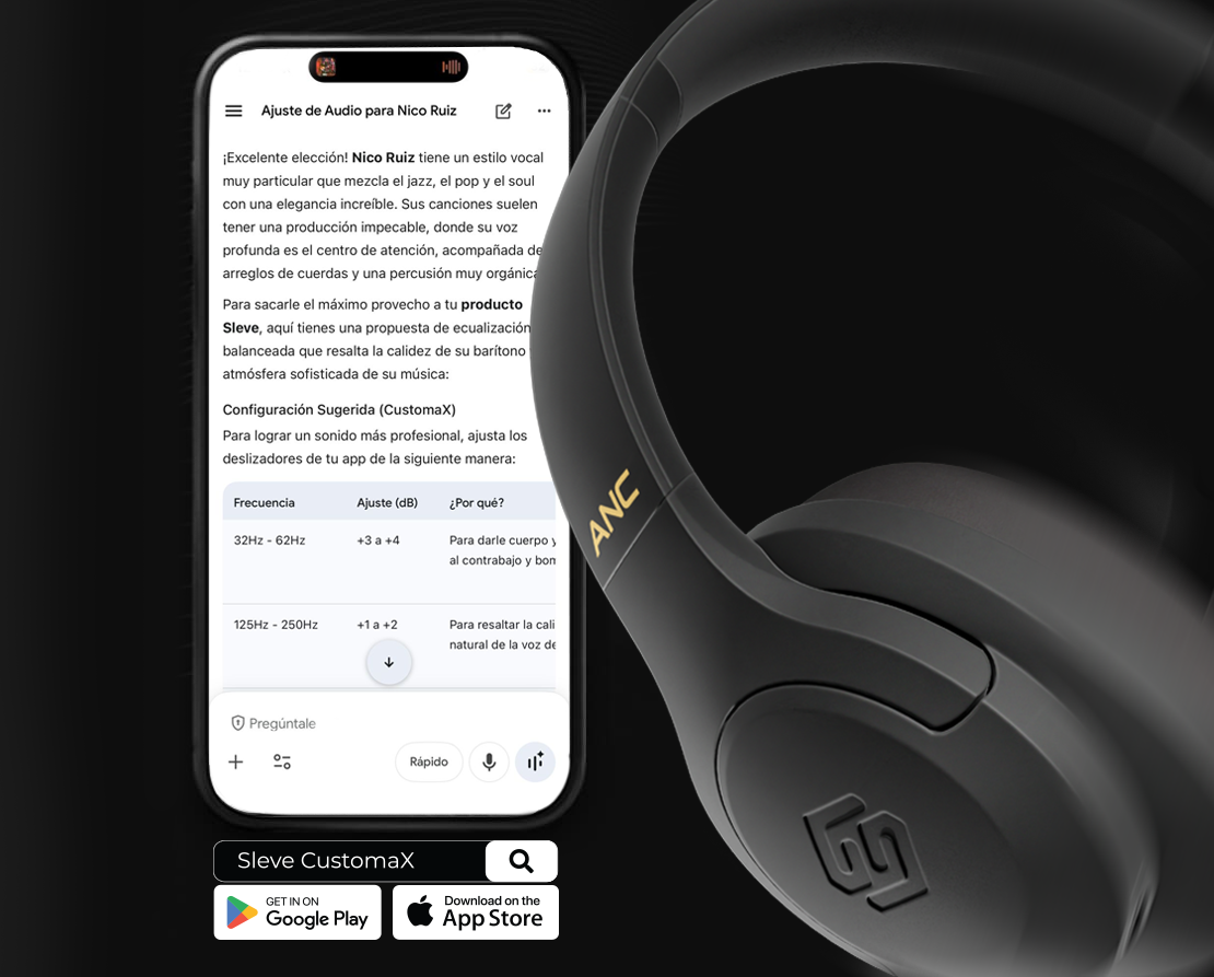 Potencia tu producto Sleve usando IA para obtener ecualizaciones personalizadas de tus artistas favoritos, logrando una fidelidad profesional en solo segundos.